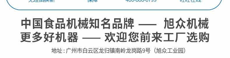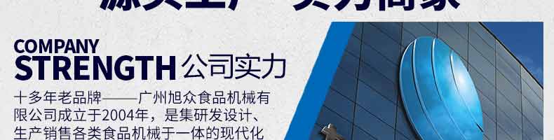 廣州旭眾食品機(jī)械有限公司是一家集科研開發(fā),生產(chǎn)設(shè)計(jì),營銷服務(wù)為一體的現(xiàn)代化生產(chǎn)企業(yè)?,F(xiàn)代化生產(chǎn)車間,精湛制造技術(shù),所產(chǎn)機(jī)械歷經(jīng)市場重重考驗(yàn),不斷贏得海內(nèi)外客戶的贊譽(yù)。
